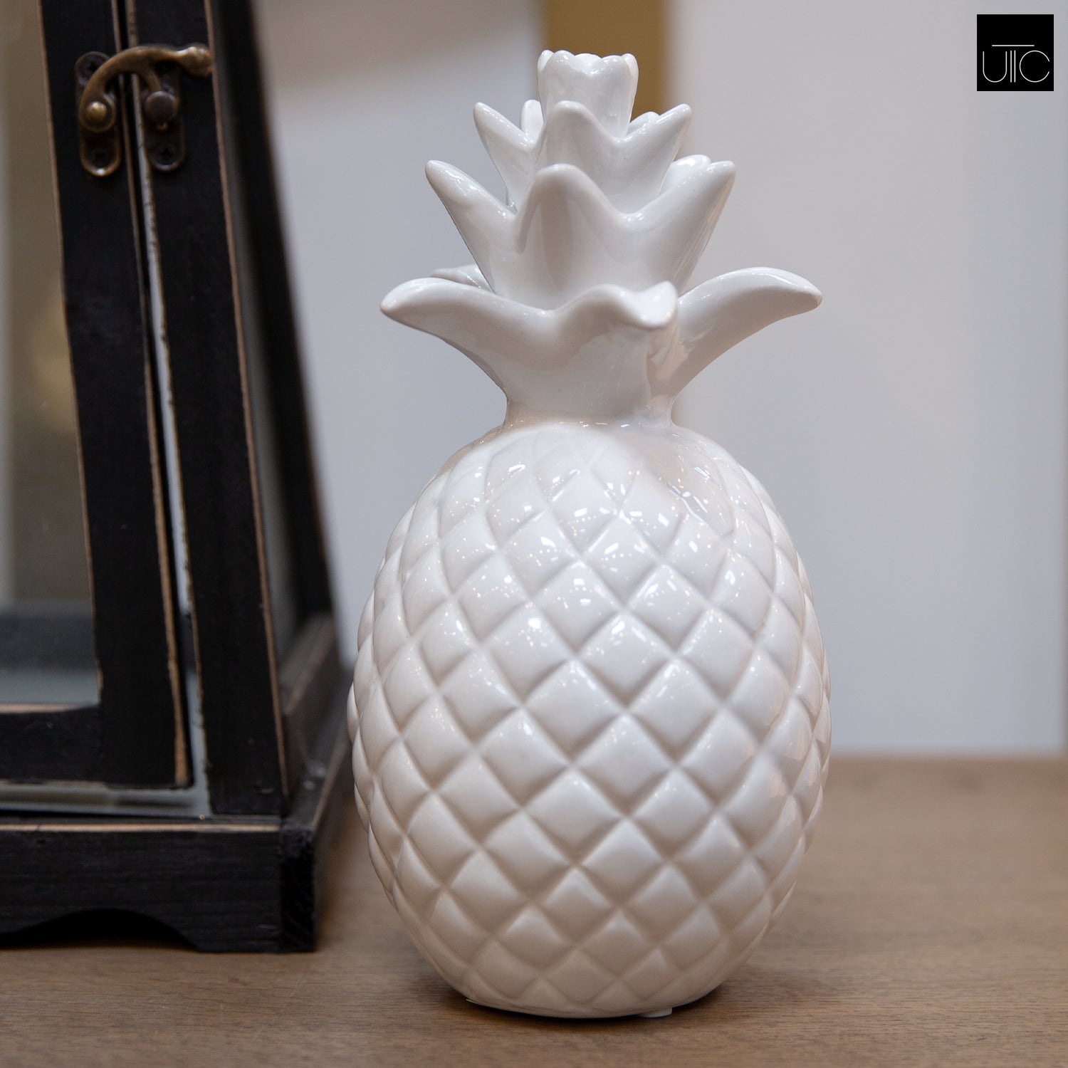 Ceramic Pineapple Figurine Pimpled Coated Finish White