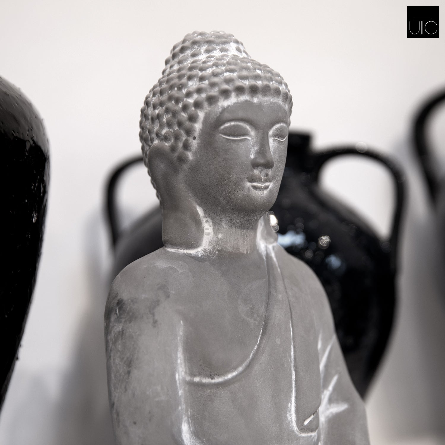 Cement Meditating Buddha Figurine Distressed Finish-10.25"H