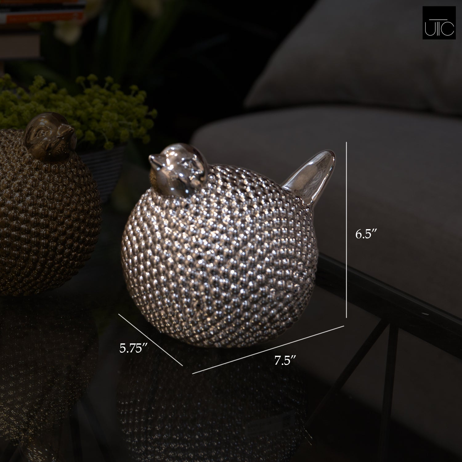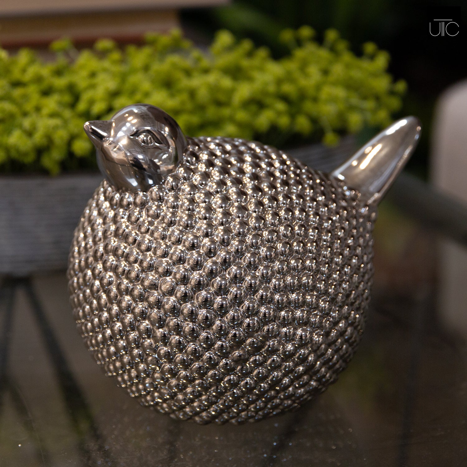Ceramic Blubbery Bird Figurine with Embossed Dimple Symmetric Pattern Design Body Gloss Finish