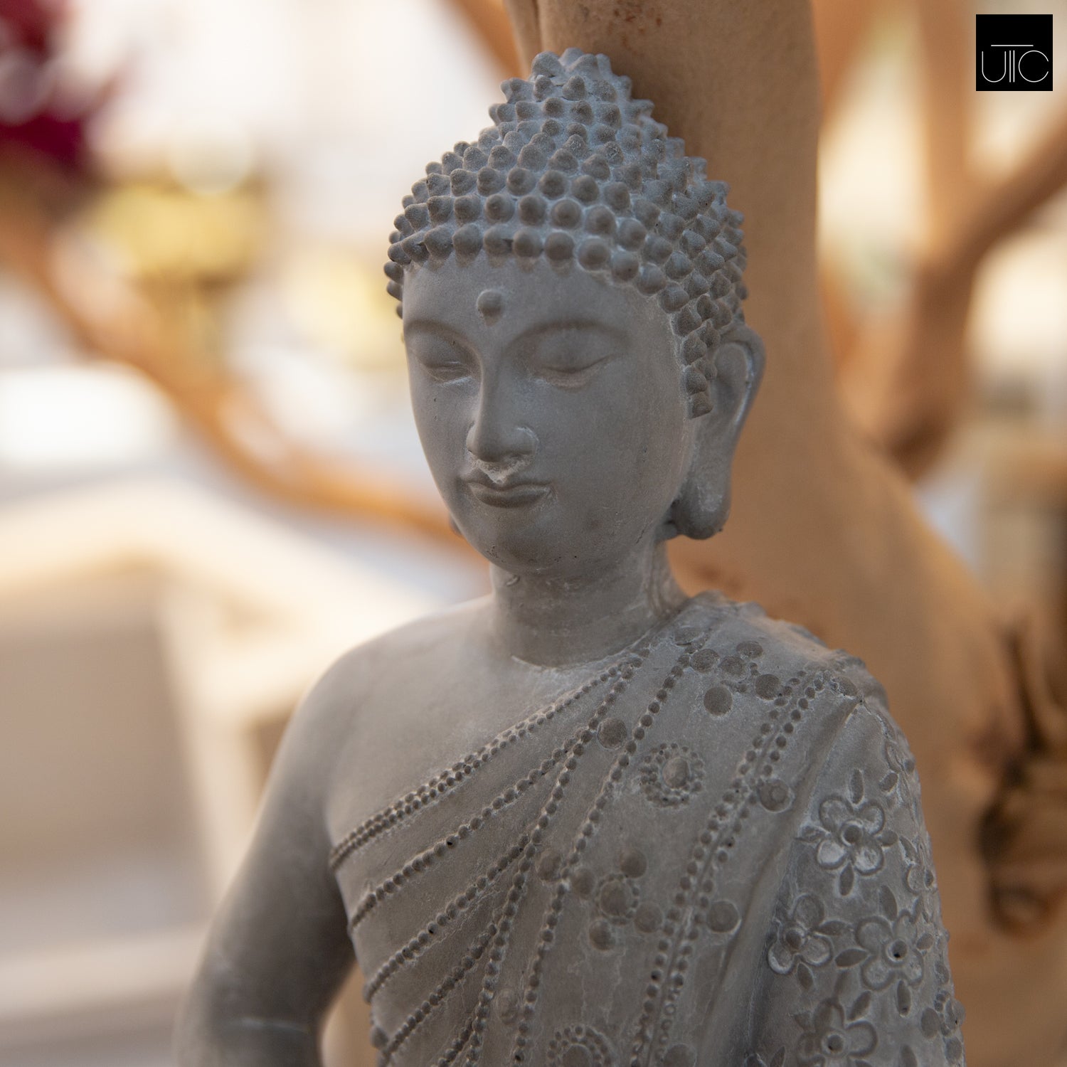 Cement Meditating Buddha Figurine Washed Concrete Finish