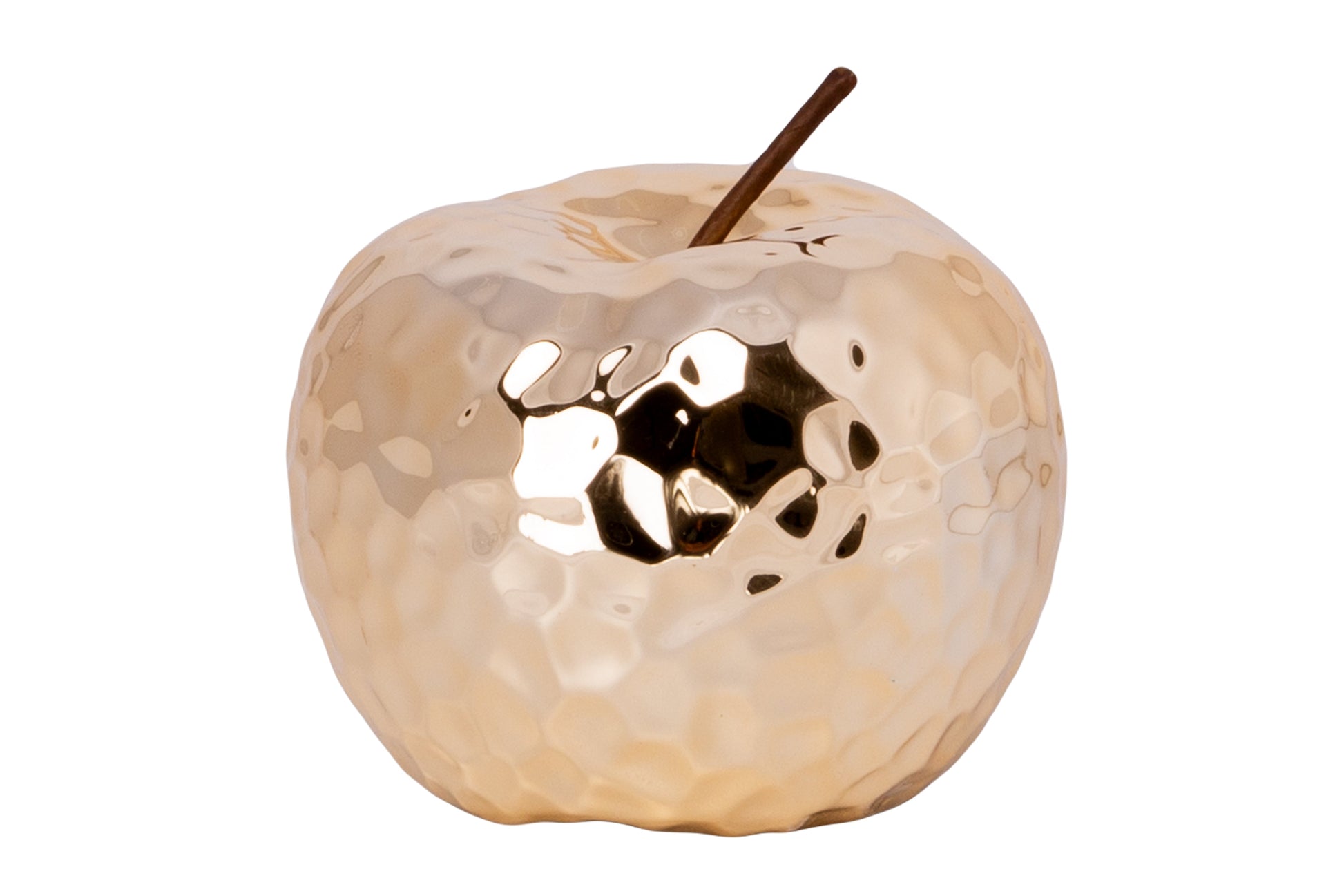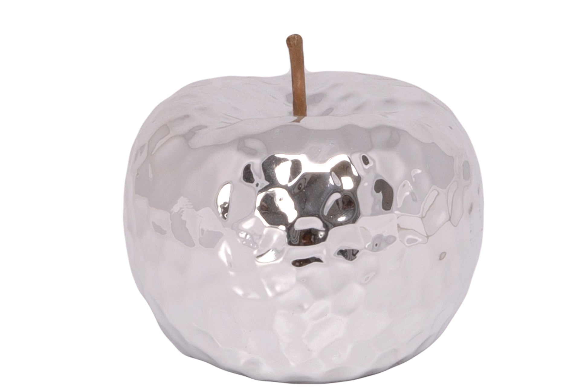 Ceramic Apple Figurine with Stem in Hammered Design Body Matte Finish Silver