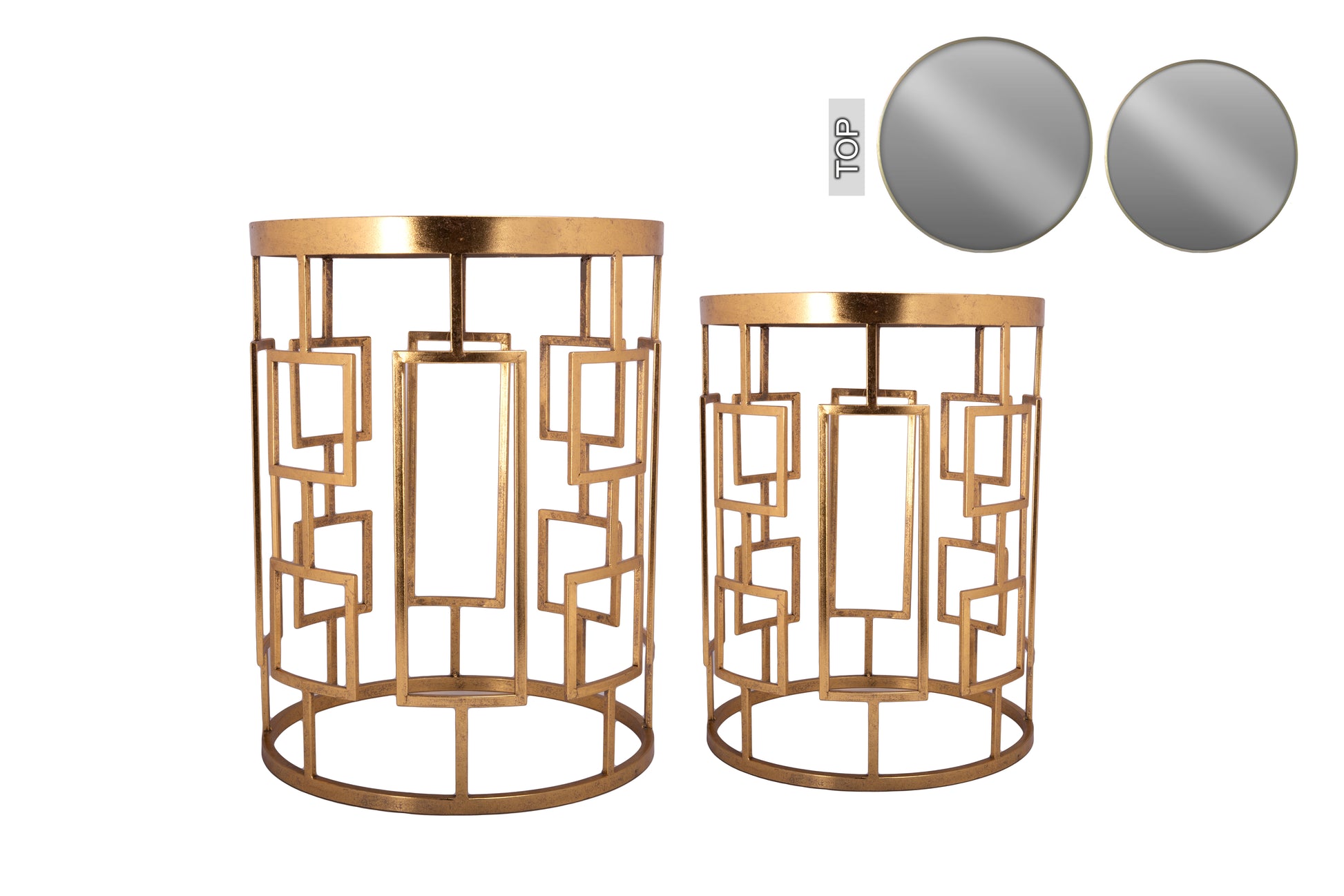 Iron Mirror Metal Table Set Of Two Foil Gold