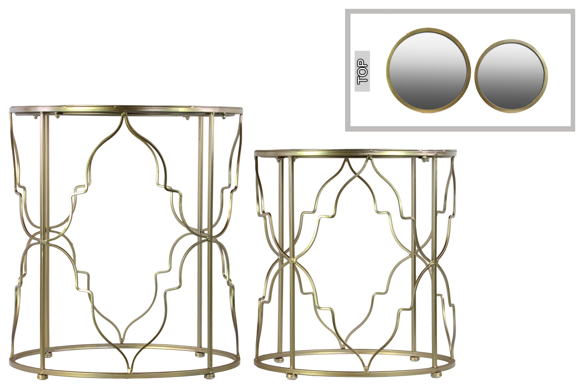 Metal Round Nesting Accent Table with Mirror Top and Round Base Set of Two Metallic FInish Gold