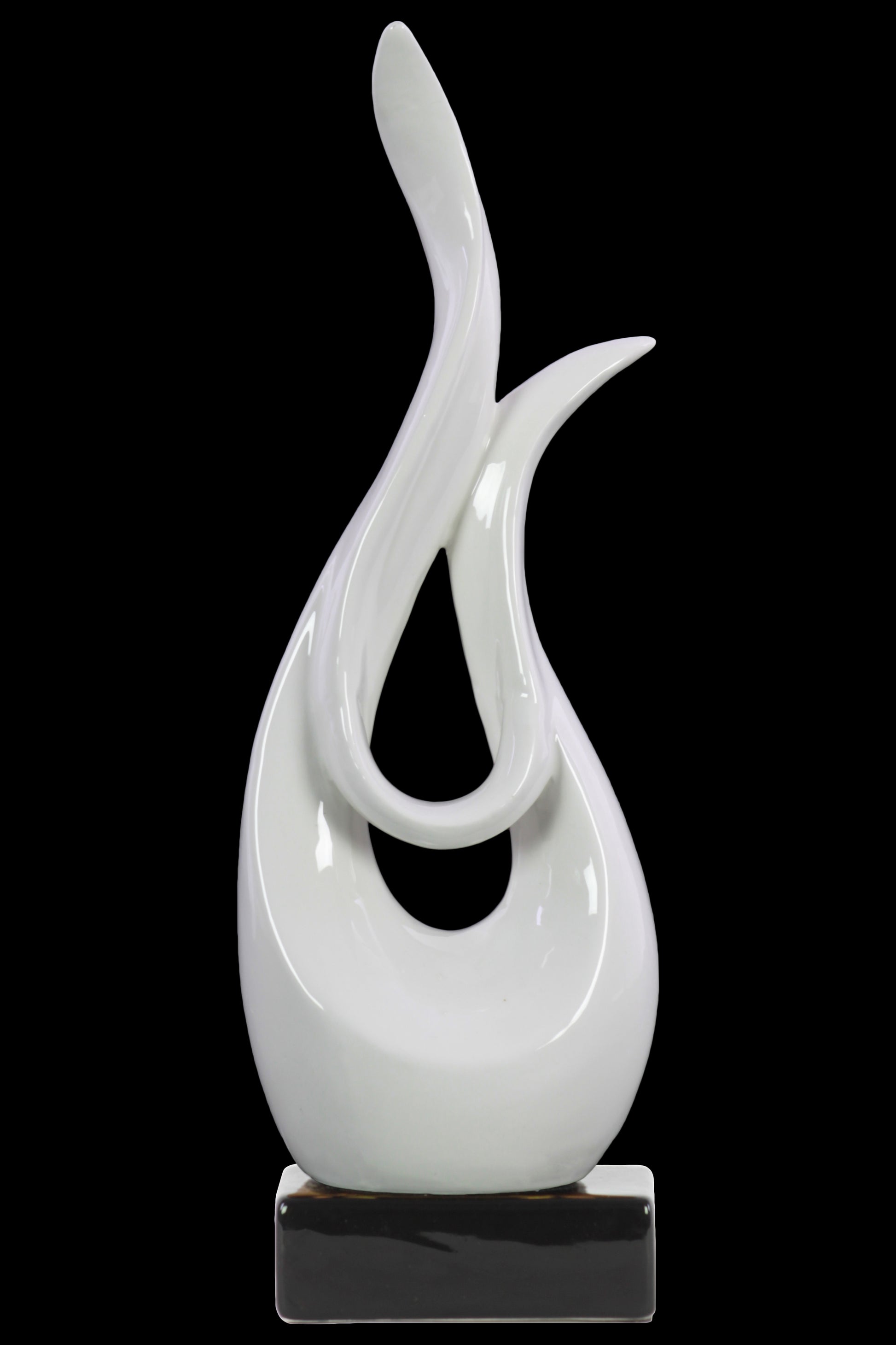 Ceramic Moon Abstract Sculpture on Rectangle Base Gloss Finish White