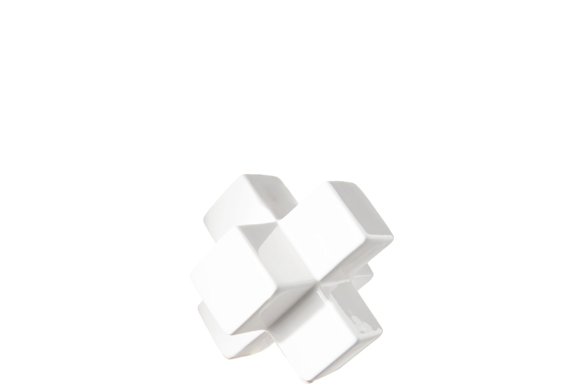 Ceramic Cross Cube Sculpture SM Gloss Finish White