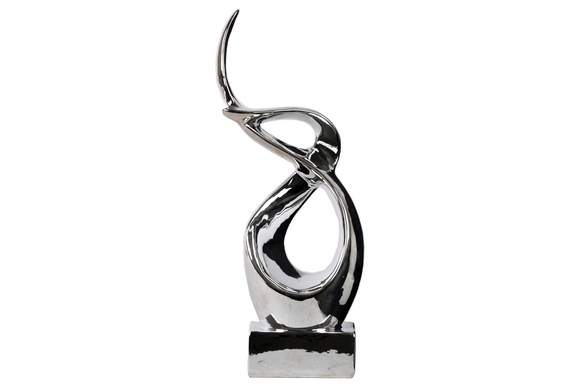 Ceramic Swirl Abstract Sculpture on Rectangular Base LG Polished Chrome Finish Silver
